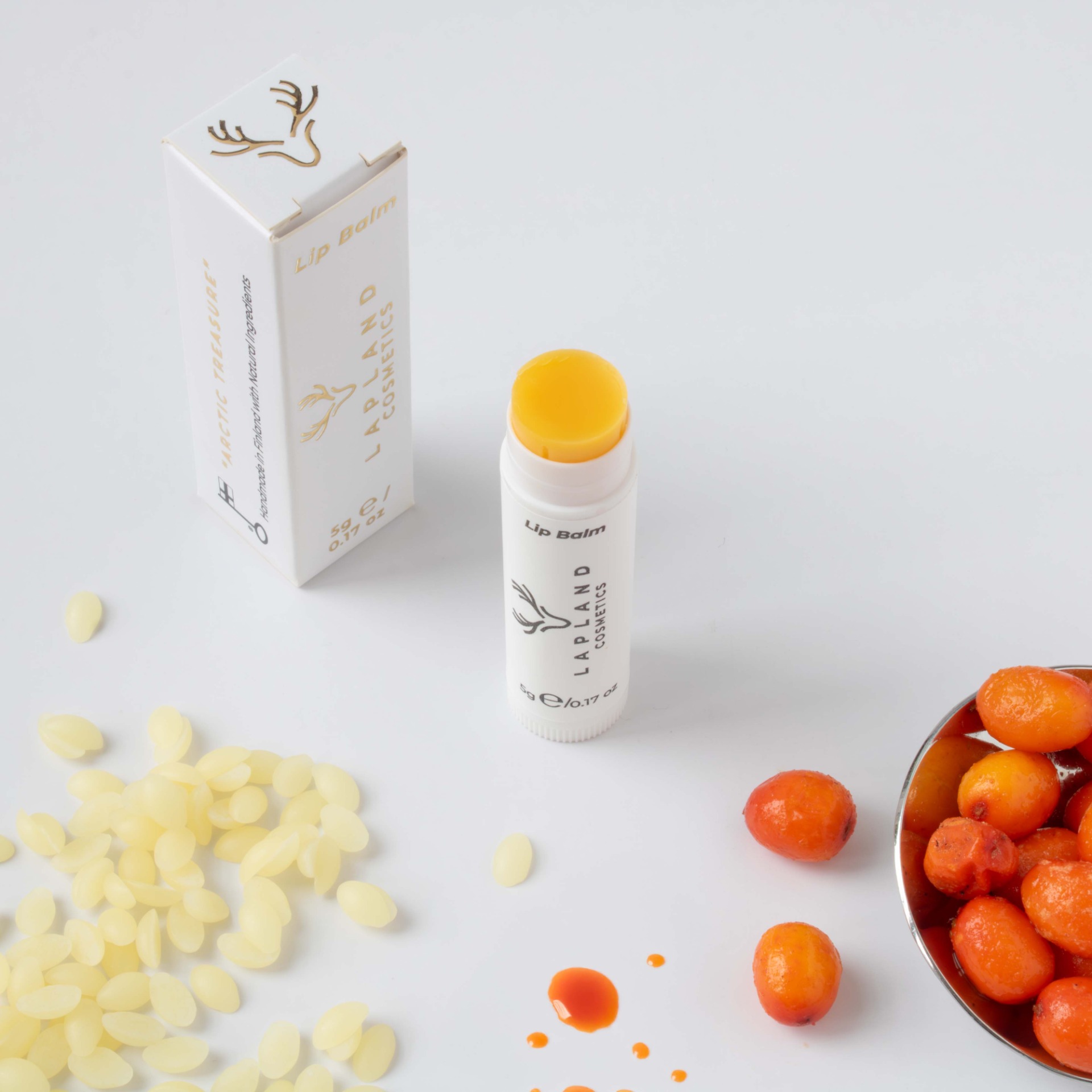 Poronrasvaa, mehiläisvahaa ja arktisten marjojen siemenöljyjä sisältävä huulivoide hoitaa huulet pehmeiksi ja suojaa niitä ankarissakin sääoloissa. Sensorisesti miellyttävä, ravinteikas puikko pehmittää ja kosteuttaa huulia ja antaa samettisen himmeän hehkun. Mehiläisvaha tuo tuotteeseen terapeuttisen tuoksun ja tekee käytöstä miellyttävän hyvinvointiheken.